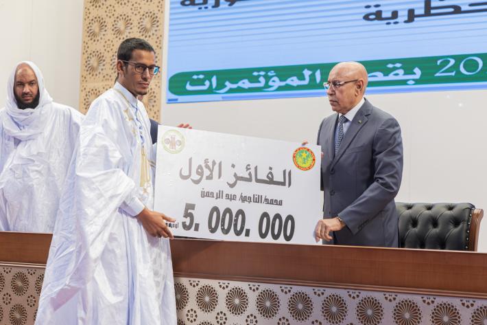 وقد سلّم رئيس الجمهورية الجائزة الأولى في المسابقة التي تبلغ 5.000.000 أوقية قديمة، للفائز الأول محمد الناجي عبد الرحمن.